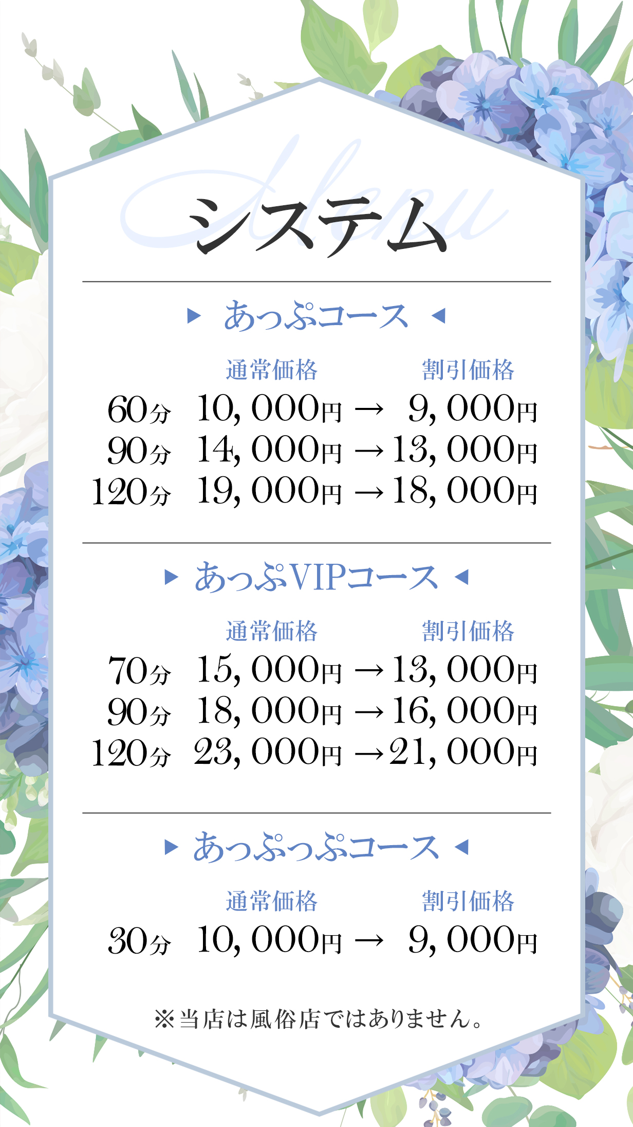 当店のセラピストは容姿が良いだけではなく、技術、マナー、気遣い等、接客面にも妥協をせず、お客様に身も心もゆだねて頂けるような愛されるセラピストとの出会いをお約束致します。どうぞ、ご安心してご利用くださいませ!